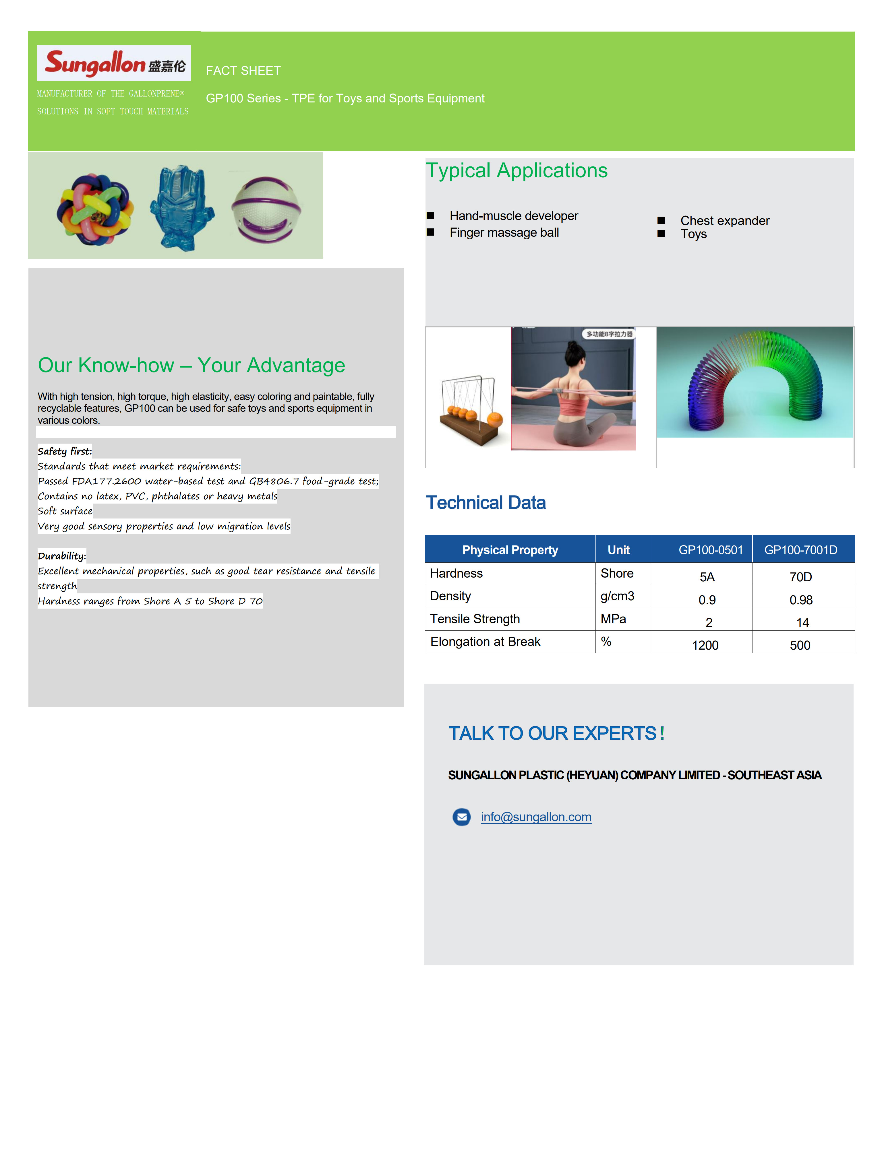 The materials comply with global toy safety standards and has a wide range of hardness, from 5A to 70D, and density from 0.89 to 0.98